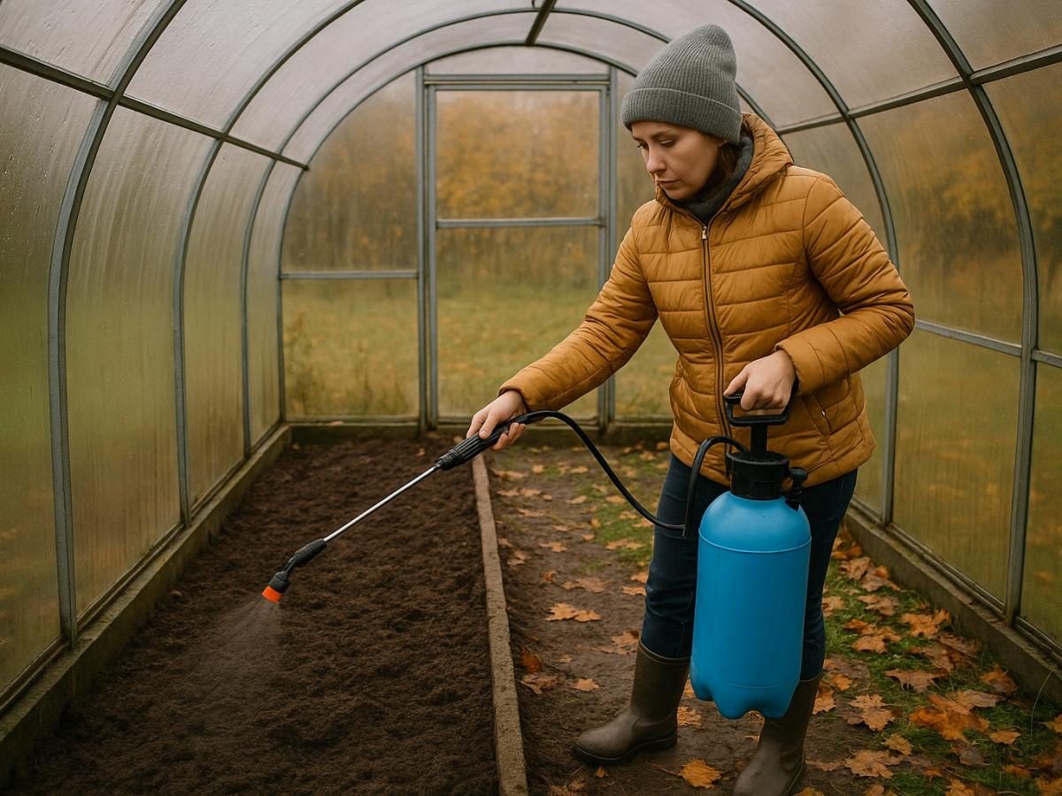 Когда основные грядки уже убраны, многие дачники закрывают сезон и покидают участок до весны. Однако теплица в это время не засыпает. В тёплых слоях почвы на глубине 10-20 см прячутся личинки хруща, проволочники, медведки и другие вредители, готовящиеся переждать зиму. Весной они пробуждаются раньше рассады и наносят первый удар по корням молодых растений. Чтобы этого избежать, опытные огородники проводят ноябрьскую профилактическую обработку теплицы. Почему ноябрь — удачное время для обработки К моменту, когда температура воздуха стабильно держится около нуля, активность насекомых падает, и большинство из них уже ушло в спячку. Именно тогда можно действовать с наибольшей эффективностью: личинки не перемещаются и не могут уйти от раствора вглубь. Кроме того, поздняя обработка помогает обеззаразить почву и каркас от спор грибковых болезней, которые весной легко переходят на новые растения. Этап 1. Генеральная чистка теплицы Первое, что нужно сделать, — освободить теплицу от остатков сезона.